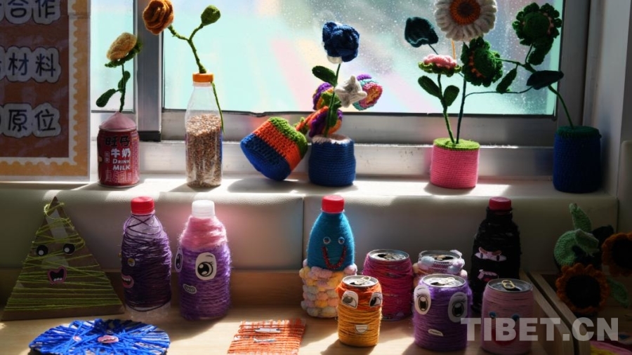 步入走廊,仿佛進(jìn)入一個(gè)由手工作品裝點(diǎn)的童趣世界。這條民族團(tuán)結(jié)文化長(zhǎng)廊,所有裝飾作品均由師生手工完成?!懊褡宕髨F(tuán)結(jié)”“中華民族一家親”等立體手工藝作品,記錄著一次次師生共創(chuàng)的成果。民族文化展示墻上,孩子們制作的多民族形象泥塑、來(lái)自云南的教師與孩子共同完成的白族扎染作品依次陳列,各民族特色服飾在這些作品中一一呈現(xiàn)。
