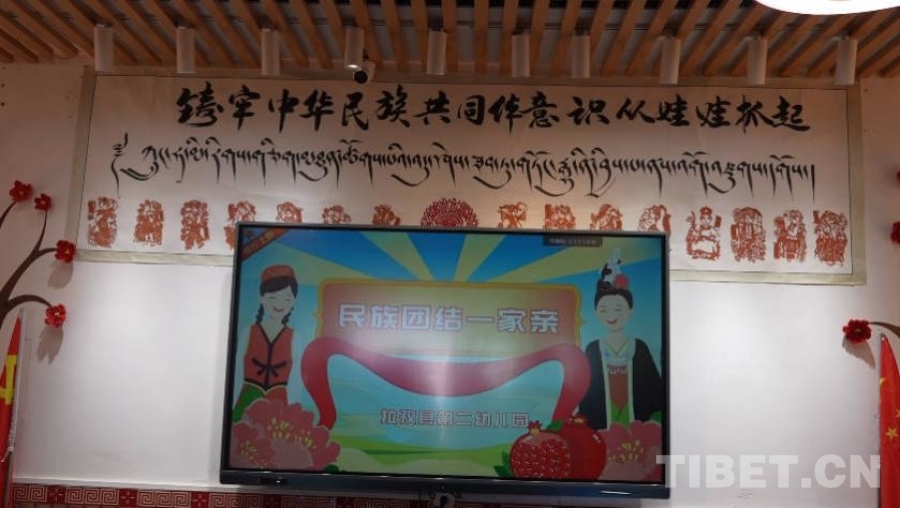 幼兒園主教學(xué)樓內(nèi)懸掛著一幅書(shū)法作品,上面寫(xiě)道:“鑄牢中華民族共同體意識(shí)從娃娃抓起?!闭?yàn)樯钤诿褡褰煌涣鹘蝗诘默F(xiàn)實(shí)環(huán)境中,了解各民族和睦相親的真實(shí)故事,這里的孩子們才能在第一時(shí)間毫不猶豫地回答出五十六個(gè)民族是一家,才能從心底認(rèn)同中華民族是我們共同的名字。中華民族共同體意識(shí)正在一代又一代娃娃的心中萌發(fā)新芽、深深扎根。(中國(guó)西藏網(wǎng) 實(shí)習(xí)記者/宋俊)