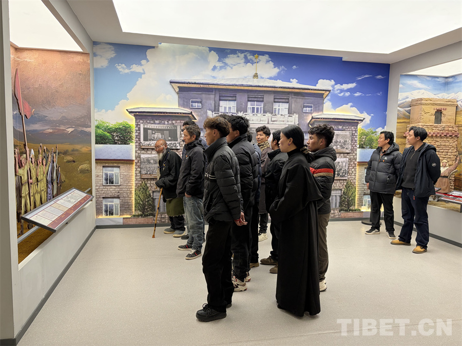 烈士陵園陳列館內(nèi)陳列著大量歷史圖片、文獻資料和烈士遺物。大家邊走邊看,不時停下腳步仔細端詳,互相交流感受。大家通過一件件革命文物、一幅幅泛黃的歷史圖片和一段段翔實的文字資料,全面了解了西藏和平解放以來波瀾壯闊的光輝歷程,深刻體會了無數(shù)共產(chǎn)黨人、革命先烈為西藏革命和建設(shè)事業(yè)前赴后繼、無私奉獻、扎根高原的崇高精神,深切感受到西藏民主改革67年來翻天覆地的歷史巨變。