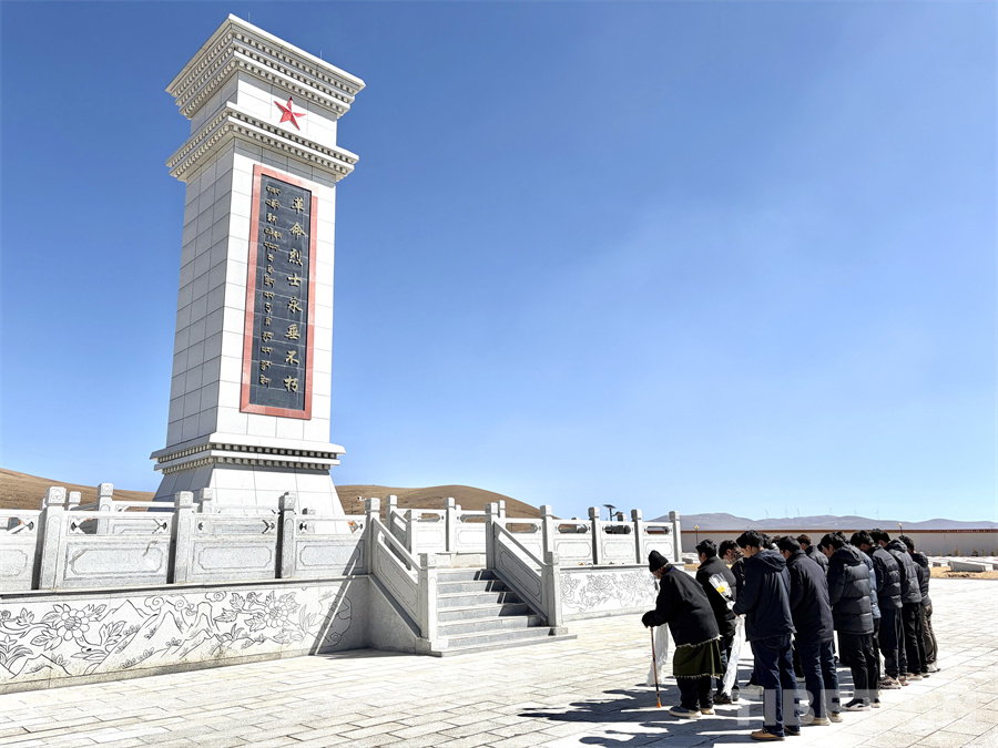 上午10時許,紀(jì)念活動正式開始。在革命烈士紀(jì)念碑前,全體人員整齊列隊、神情肅穆。大家手持鮮花和潔白的哈達,面向革命烈士紀(jì)念碑深深三鞠躬,隨后向為西藏和平解放、民主改革和建設(shè)發(fā)展英勇獻身的革命先烈默哀三分鐘,寄托對英烈的無限緬懷與哀思。