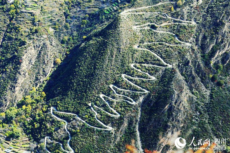 丹巴縣蜿蜒曲折的通村路。李永安 攝