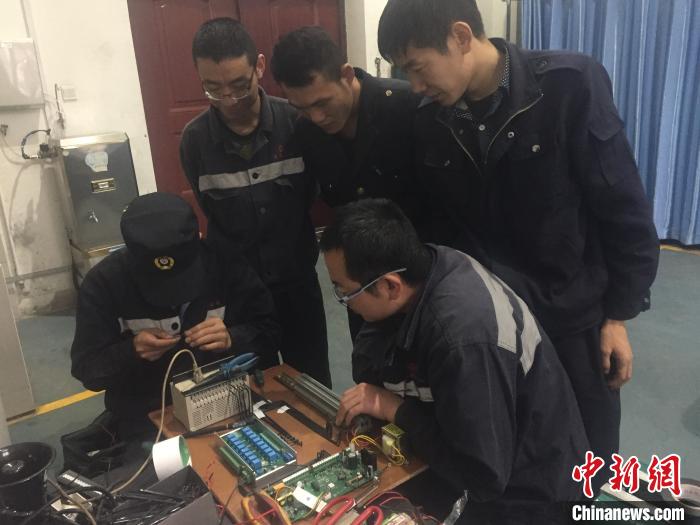 圖為攻關小組研制脫軌自動報警裝置控制系統(tǒng)。蔡建庭 攝