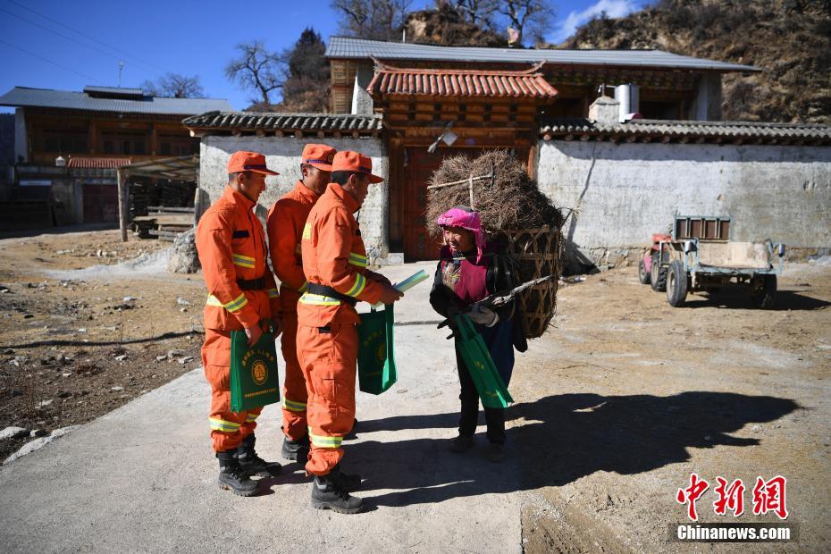 迪慶森林消防員進(jìn)村進(jìn)行防火宣傳。中新社記者 劉冉陽 攝