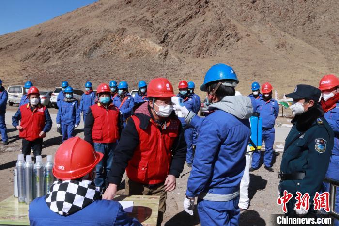 圖為工程建設(shè)現(xiàn)場(chǎng),電網(wǎng)建設(shè)者經(jīng)測(cè)溫消毒登記等疫情防控程續(xù)后有序進(jìn)場(chǎng)。徐曉韜 攝