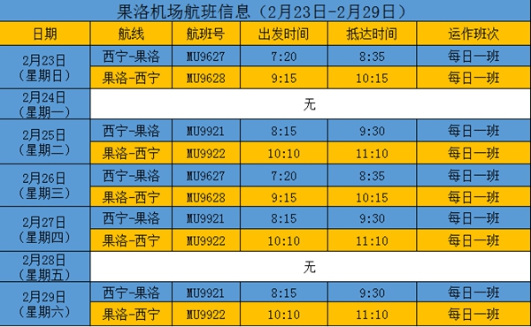 果洛機場航線恢復首周航班時刻表