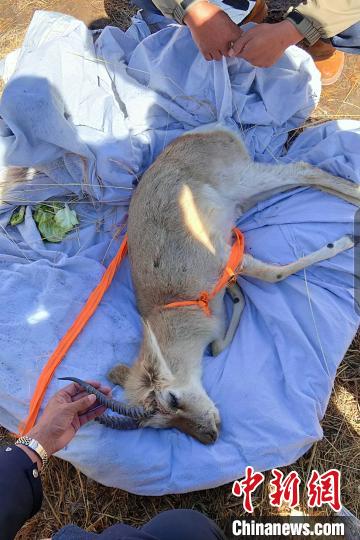 圖為受傷的國(guó)家二級(jí)保護(hù)野生動(dòng)物雄性藏原羚。達(dá)日縣森林公安局供圖