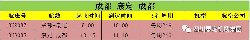 3月5日,記者從四川康定機(jī)場(chǎng)集團(tuán)獲悉,甘孜州內(nèi)康定、稻城、格薩爾三大機(jī)場(chǎng)航線航班已于日前陸續(xù)恢復(fù),調(diào)整后的航線航班為:成都—康定航班每周執(zhí)飛周二、周四、周六,特價(jià)機(jī)票單程低至399元,往返低至699元;成都—稻城航班每天1班;成都—格薩爾航班每周執(zhí)飛周一、周三、周五、周日。具體以預(yù)定時(shí)查詢?yōu)闇?zhǔn)??刀C(jī)場(chǎng)集團(tuán)航線航班查詢訂票熱線:028—61512291。