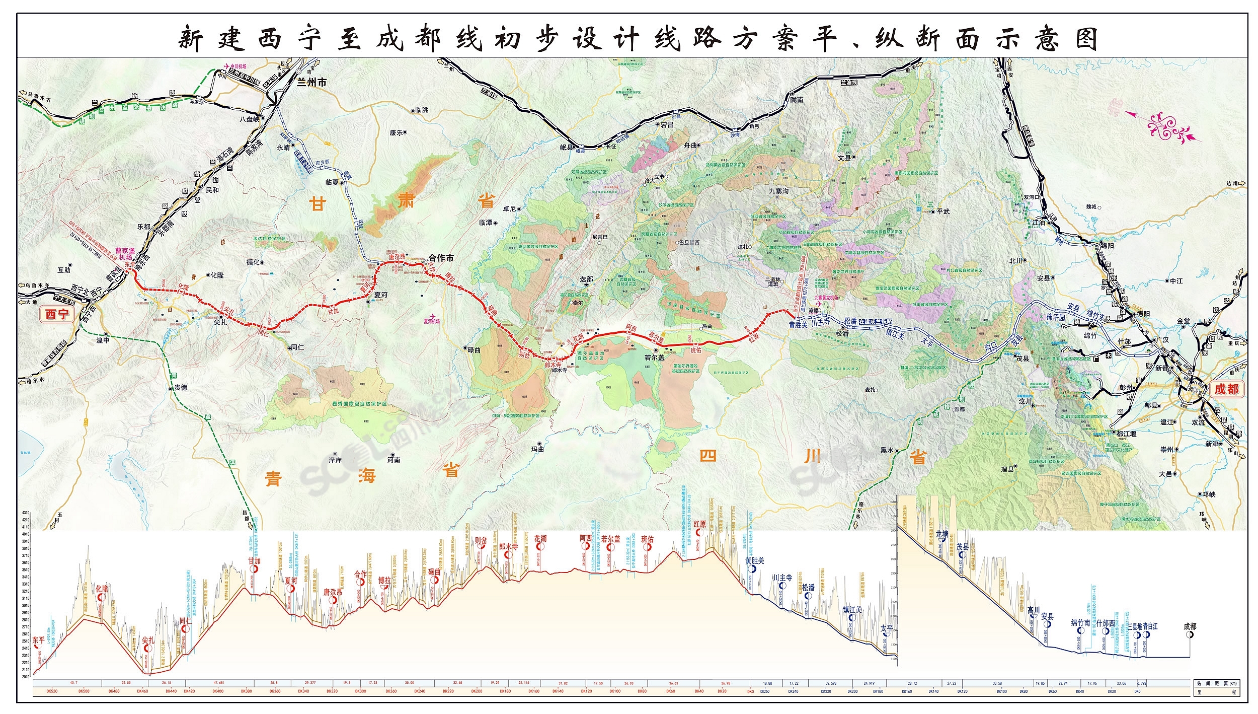 新建西寧至成都鐵路在全國鐵路網中的位置