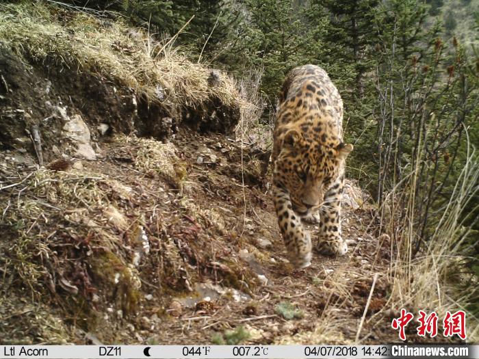 資料圖為紅外相機(jī)監(jiān)測(cè)到的金錢(qián)豹。山水自然保護(hù)中心供圖