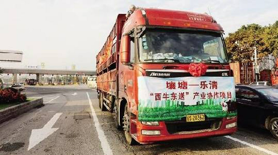 四川壤塘牦牛通過“西牛東送”項目運往浙江省樂清市。