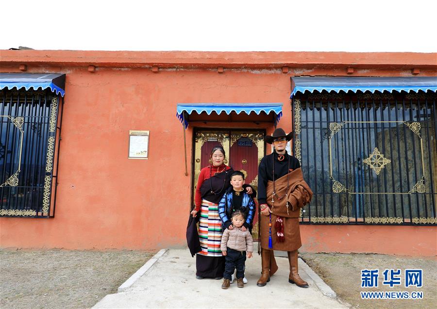 藍(lán)天下,四川甘孜藏族自治州理塘縣村戈鄉(xiāng)芒康村白瑪達(dá)吉一家人穿上嶄新藏裝,站在修葺一新的自家房子面前?!斑青辍?,一張全家福照片將他們臉上洋溢著的幸福笑容定格。