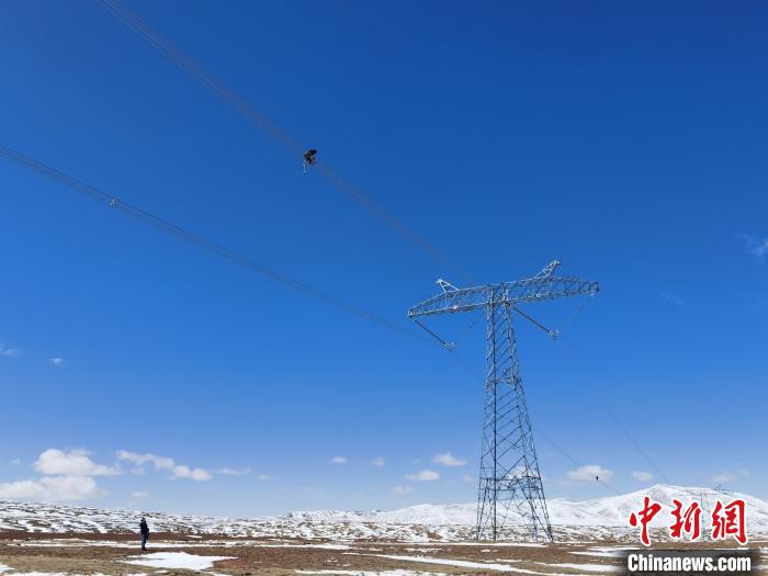 圖為5月13日,國(guó)網(wǎng)青海檢修公司輸電運(yùn)檢人員在海拔五千米的風(fēng)火山地區(qū)對(duì)“電力天路”±400千伏柴拉直流線路進(jìn)行空中走線巡檢,查找并消除線路缺陷。謝莉蓉 攝