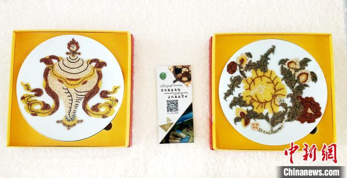 “在我們藏族地方習俗中,為了祈盼五谷豐登,不少人家都會用五谷拼湊出彩色圖案來供奉。像青稞、小麥、油菜籽等,通過巧妙構(gòu)思,‘繪’制的圖案就是‘五谷畫’?!痹诜g的幫助下,索南本用藏語如是介紹自己來自高原的手藝。