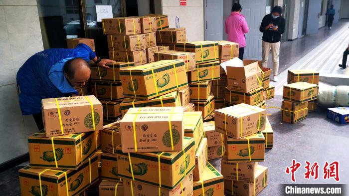圖為直播下單的瓜州蜜瓜裝箱郵寄。朱丹丹 攝