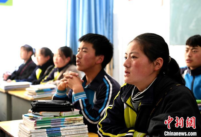 阿壩縣藏文中學(xué)校初三學(xué)生正在上課。安源 攝