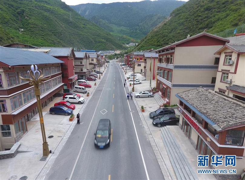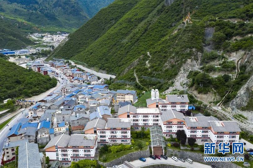 九寨溝地震震中九寨溝縣漳扎鎮(zhèn)新貌(無(wú)人機(jī)照片,6月18日攝)。 新華社記者 劉坤 攝