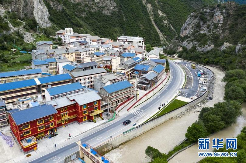 九寨溝地震震中九寨溝縣漳扎鎮(zhèn)新貌(無(wú)人機(jī)照片,6月18日攝)。新華社記者 劉坤 攝