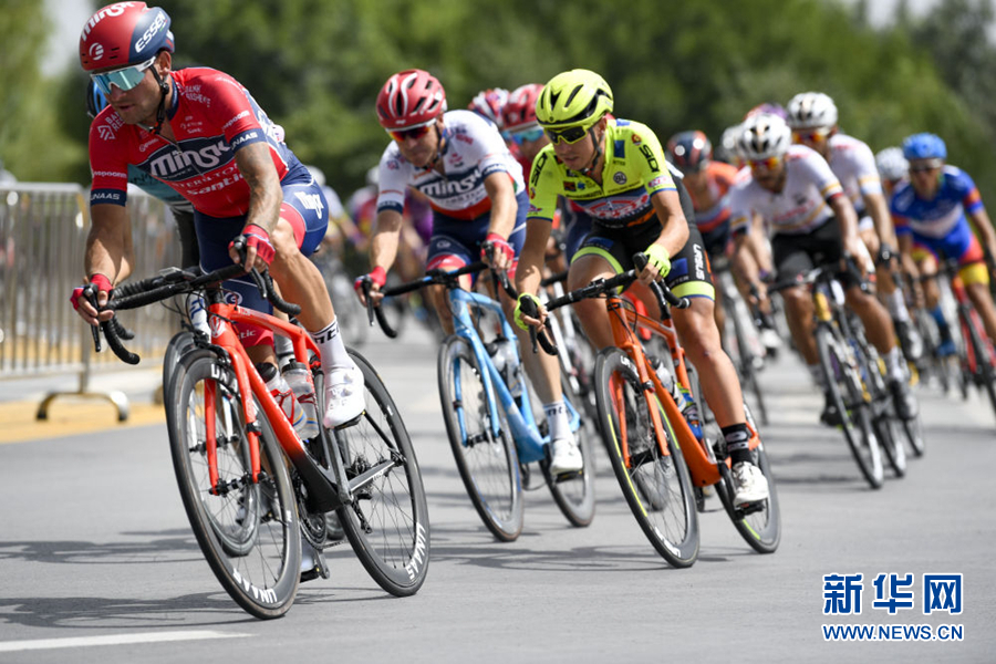 2019年7月27日,參賽車(chē)手在比賽中。當(dāng)日,第十八屆環(huán)青海湖國(guó)際公路自行車(chē)賽結(jié)束最后一個(gè)賽段——寧夏銀川繞圈賽的角逐。新華社 馮開(kāi)華 攝