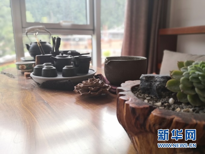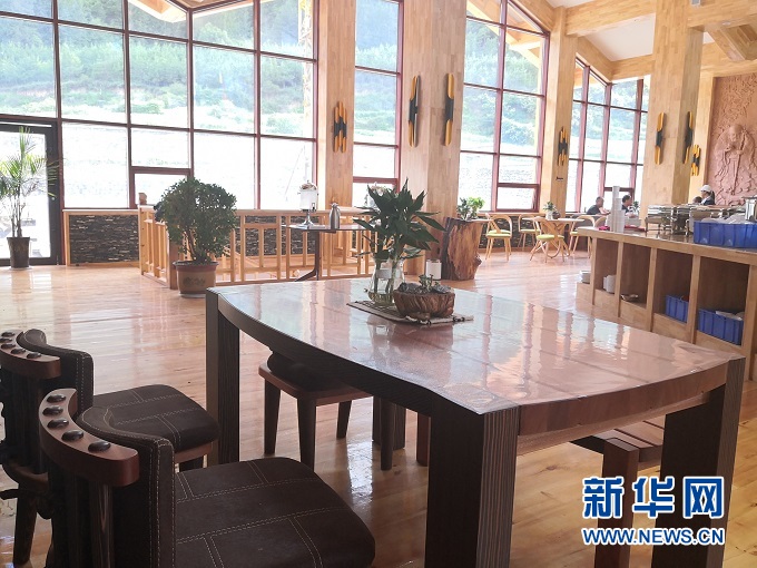 傍晚時分走進(jìn)高吉村,錯落有致的民宿散落山間,落地窗透出暖黃色的燈光。房間里藏式床鋪與原生態(tài)家具相映成趣,靠窗的榻上擺放著茶幾、茶具、綠植,一覽無余的窗外夕陽半落、云飛鳥散。游客接待中心也一改傳統(tǒng)樣式,樓上是純木質(zhì)、開放式餐廳,樓下是小橋流水、曲徑通幽的水景,游客們?nèi)齼蓛傻暮戎Х?,享受著詩意的人生?/p>