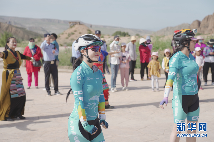 圖為“挑戰(zhàn)2020”環(huán)湖精英行“網(wǎng)紅”團(tuán)隊(duì)在貴德國(guó)家地質(zhì)公園準(zhǔn)備騎行。新華網(wǎng) 魚(yú)昊 攝