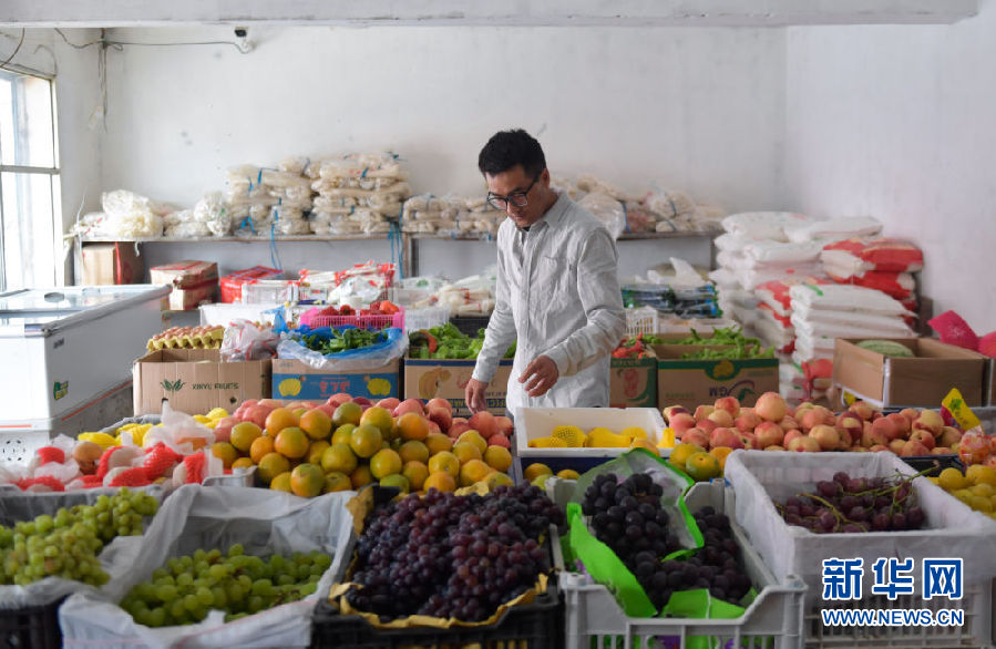 8月13日,尤拉太在返鄉(xiāng)前到興??h一家水果店內(nèi)購物。新華社記者 張龍 攝