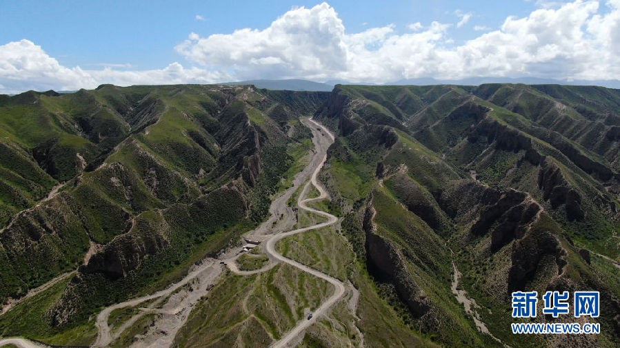 這是8月13日拍攝的進(jìn)入夏塘村的道路(無人機(jī)照片)。新華社記者 張龍 攝
