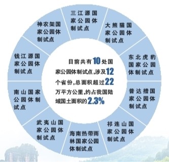 自2015年以來,我國開展了東北虎豹、祁連山、大熊貓、三江源、海南熱帶雨林、武夷山、神農架、普達措、錢江源、南山等10處國家公園體制試點。試點區(qū)將各級各類自然保護地整合劃入國家公園試點區(qū)范圍,對山水林田湖草等自然生態(tài)系統(tǒng)實行統(tǒng)一管理、整體保護和系統(tǒng)修復。