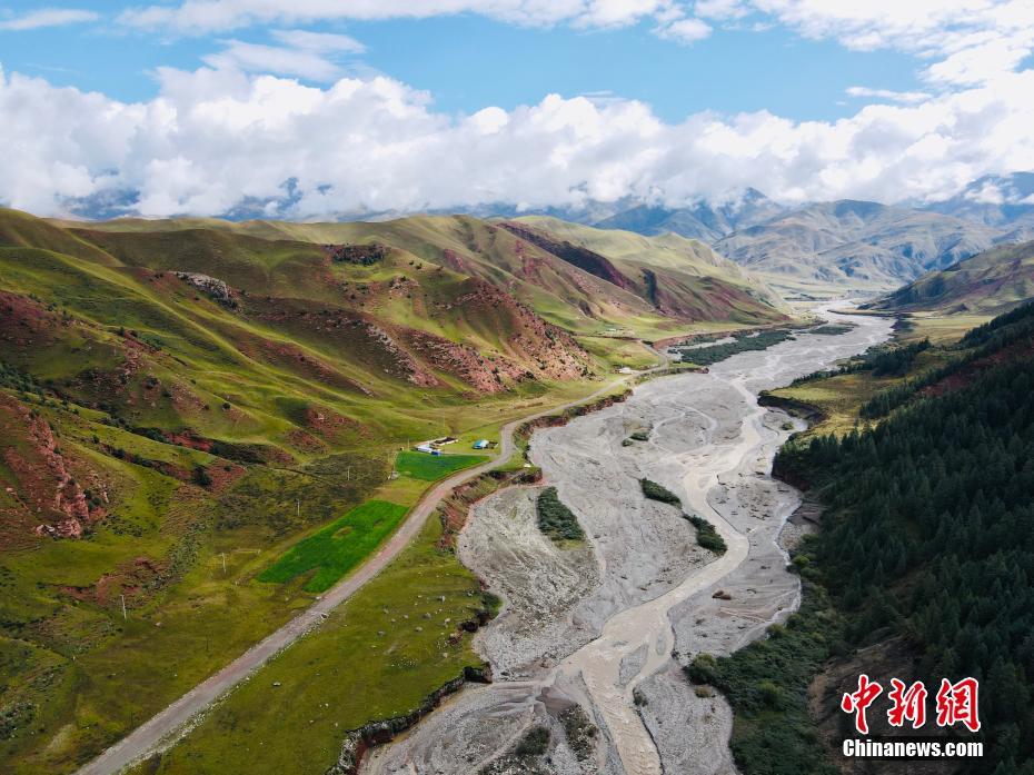 9月9日,航拍祁連山國家公園青海片區(qū)油葫蘆自然風景區(qū)美景。初秋時節(jié),祁連山國家公園青海片區(qū)草地漸黃,天高云淡,勾勒出一幅色彩斑斕的秋日美景圖。中新社記者 李江寧 攝