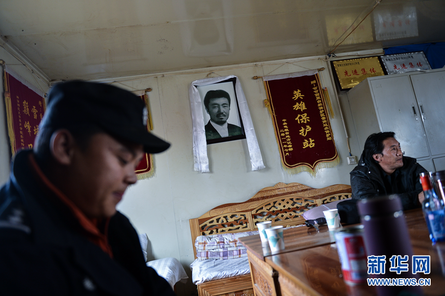 可可西里巡山隊(duì)員尼瑪扎西(右)與隊(duì)友龍周在索南達(dá)杰保護(hù)站休息(2015年12月26日攝)。新華社記者 吳剛 攝