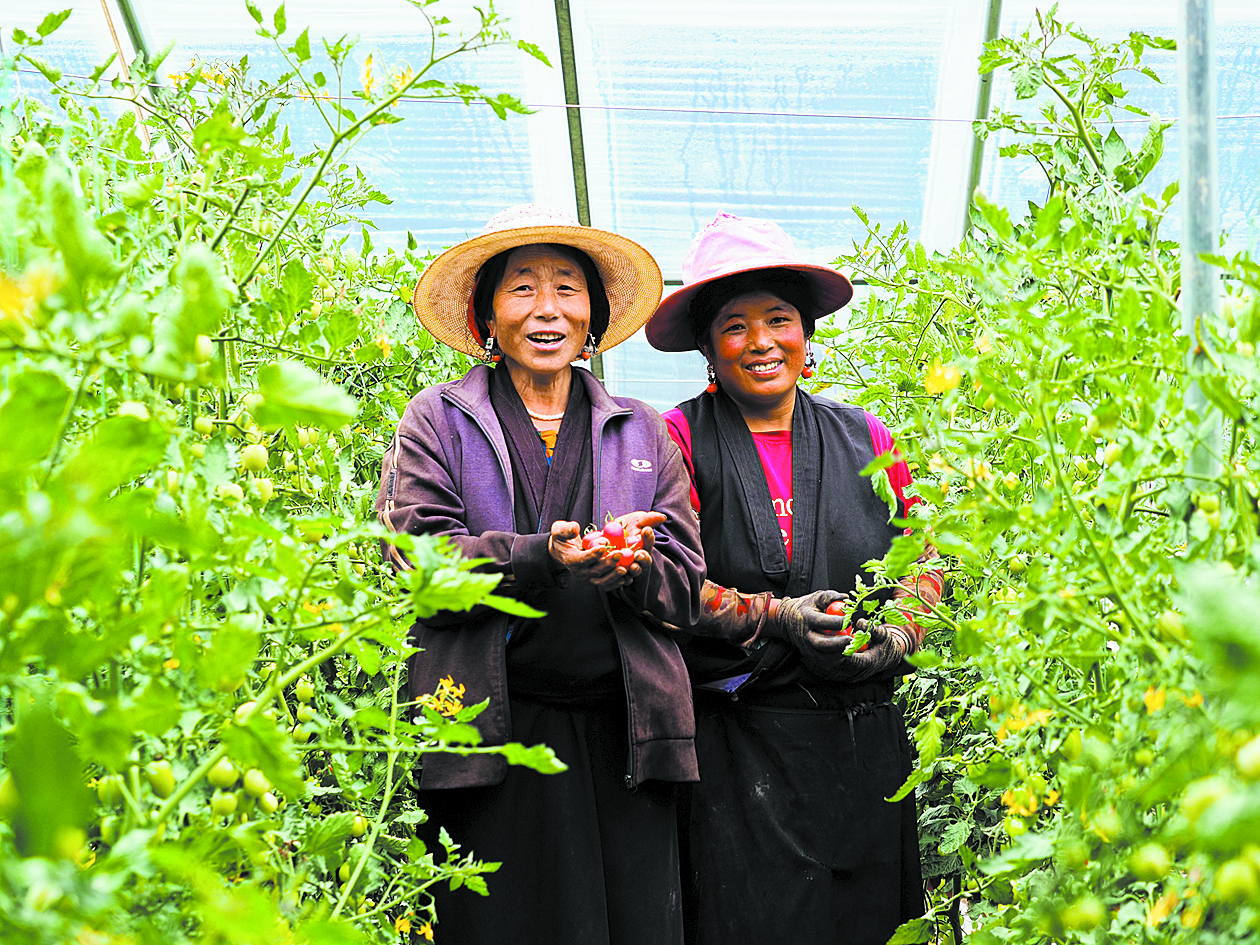 “嘗嘗這個小番茄,是不是很甜?”隨意摘下一個紅寶石般的小番茄,村民達(dá)娃卓瑪笑著遞給記者。