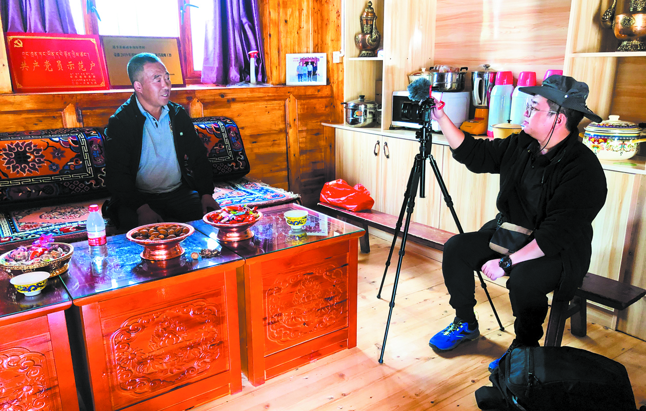 記者在溝爾普村采訪。于譚陽 攝