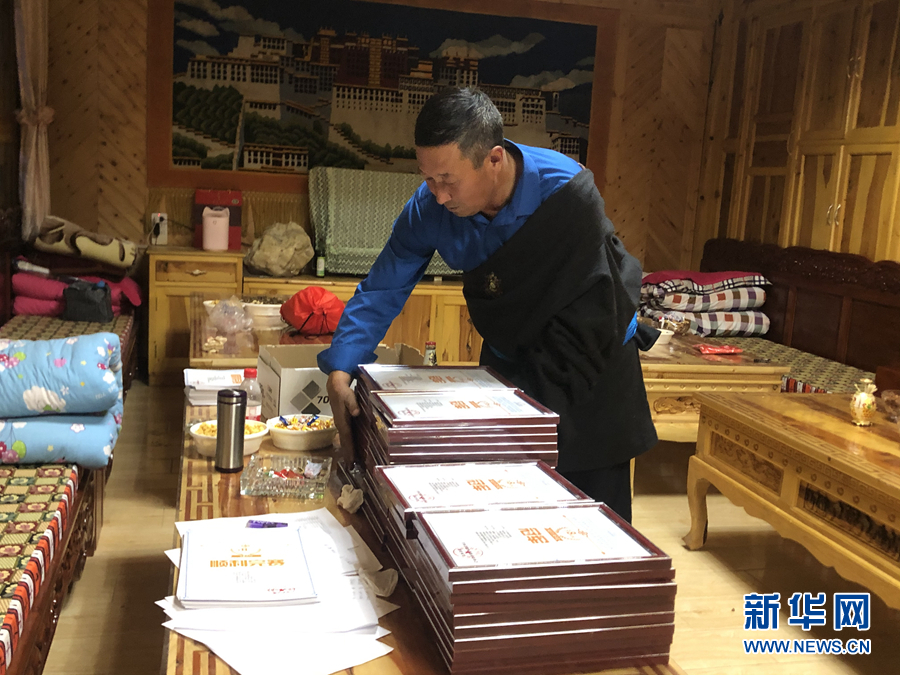 村民才保在家中整理運動員完賽證書。新華網(wǎng) 魚昊 攝