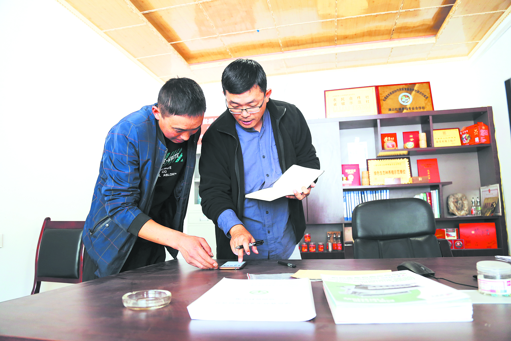 地里花椒采摘忙,村里花椒合作社也是一片繁忙,機(jī)器干燥、抽真空包裝、裝進(jìn)產(chǎn)品盒、貼好地址準(zhǔn)備發(fā)貨。在采訪中,盧洪有手機(jī)微信“叮咚”一聲,他立馬看了一下,“有人給你發(fā)紅包?”“紅包算啥子哦。今年有三成貨是通過網(wǎng)上銷售,每天,合作社工作人員都會(huì)把訂單信息發(fā)到合作社成員的微信群里?!泵鎸?duì)記者的調(diào)侃,盧洪有顯得很自信。這樣的自信來自確實(shí)鼓起來的荷包。