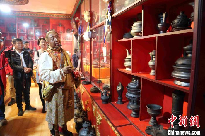 圖為青海省玉樹藏族自治州囊謙縣的國家級“非遺”傳承人白瑪群加介紹藏族黑陶手藝。張?zhí)砀?攝