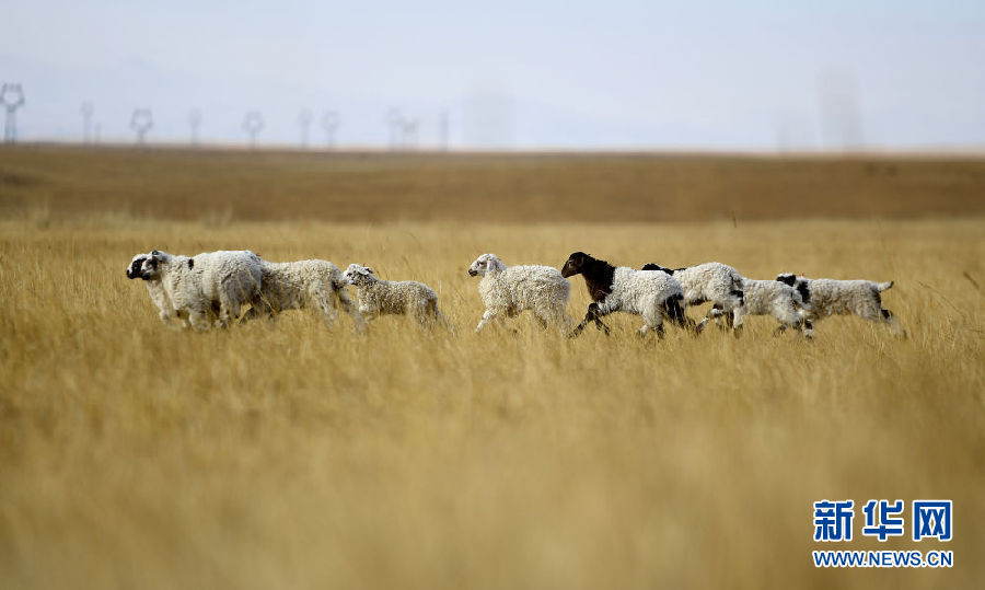 在青海省剛察縣泉吉鄉(xiāng)寧夏村,達日杰家的小羊羔在草場上(11月12日攝)。 新華社記者 張宏祥 攝