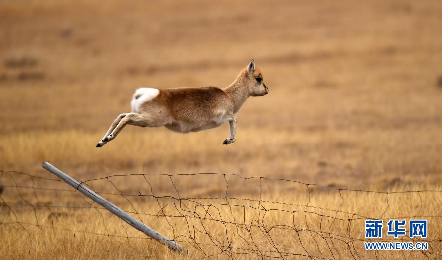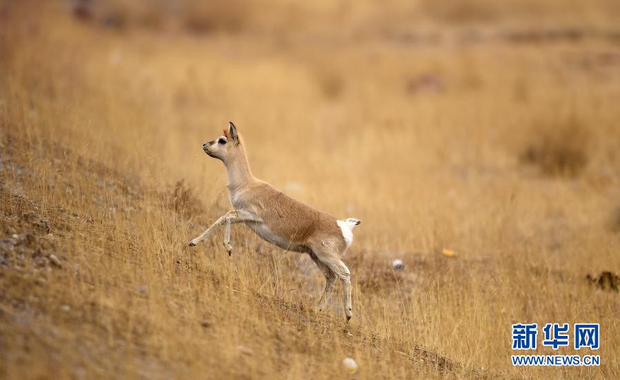 12月17日在青海海北剛察縣哈爾蓋鎮(zhèn)的草原上拍攝的普氏原羚。新華社記者 張宏祥 攝