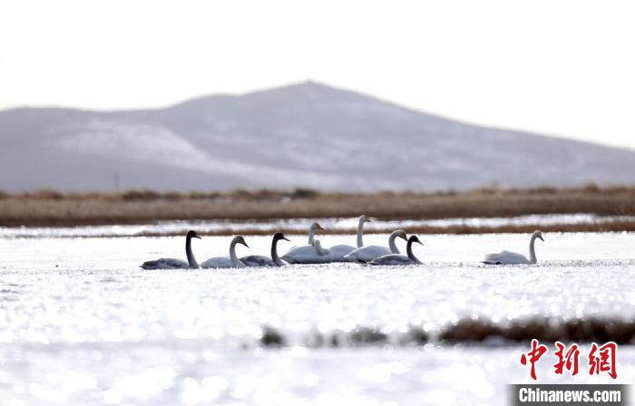 白天鵝飛抵若爾蓋棲息越冬。鄧政琪 攝