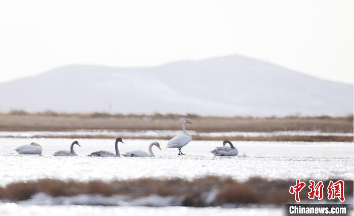白天鵝飛抵若爾蓋棲息越冬。周林 攝
