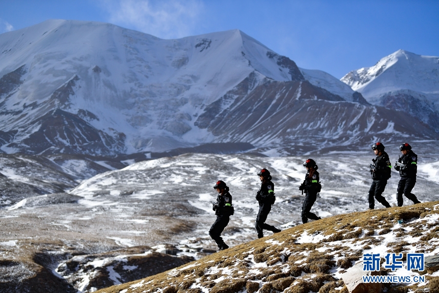 1月9日,青海省果洛藏族自治州公安局特警支隊直屬女子中隊的隊員們在阿尼瑪卿山腳下參加高原野外適應(yīng)性訓(xùn)練。新華社記者 張龍 攝