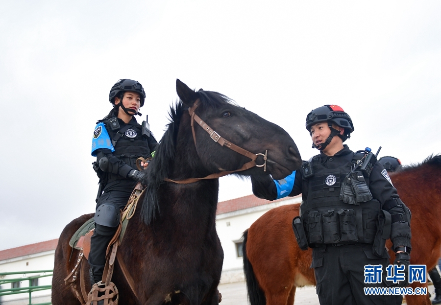 1月9日,青海省果洛藏族自治州公安局特警支隊直屬女子中隊的隊員在進行騎馬執(zhí)勤訓(xùn)練。新華社記者 張龍 攝