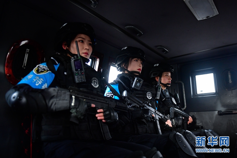 1月9日,青海省果洛藏族自治州公安局特警支隊直屬女子中隊的隊員們乘車參加訓(xùn)練。新華社記者 張龍 攝