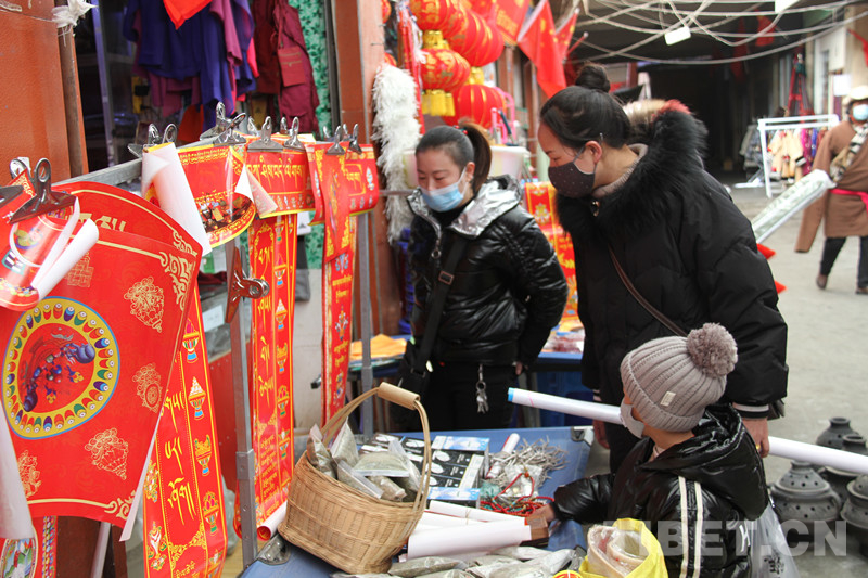 圖為選購藏式春聯(lián) 葉強(qiáng)平 攝