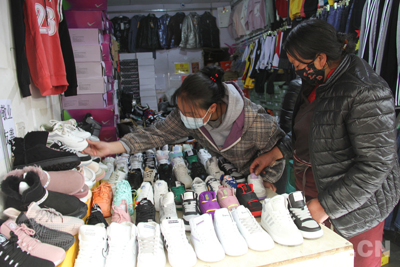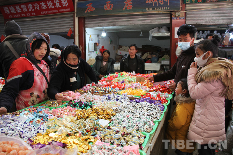圖為藏族青年選年貨 葉強(qiáng)平 攝