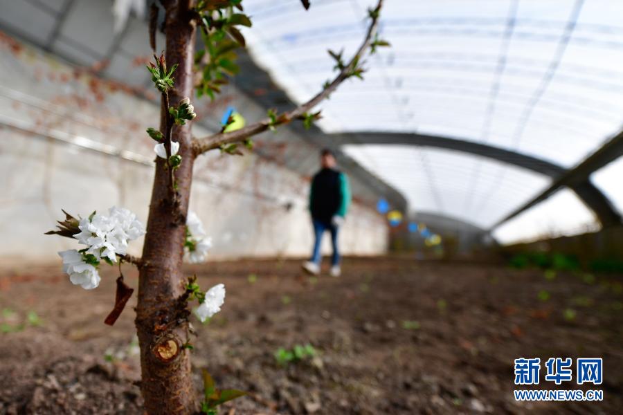 3月14日,在青海省果洛藏族自治州農(nóng)牧業(yè)生態(tài)科技示范園內,農(nóng)業(yè)技術員冷治在櫻桃樹種植棚內工作。新華社記者 張龍 攝