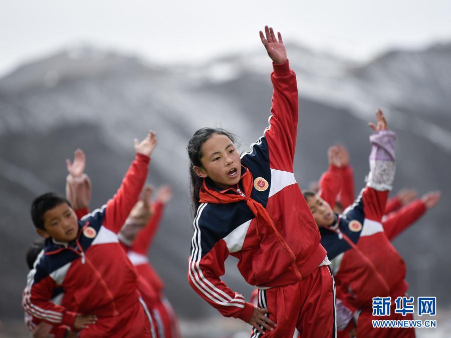 3月17日,在果洛藏族自治州甘德縣下貢麻鄉(xiāng)寄宿制中心小學(xué),學(xué)生在上體育課。新華社記者 張龍 攝