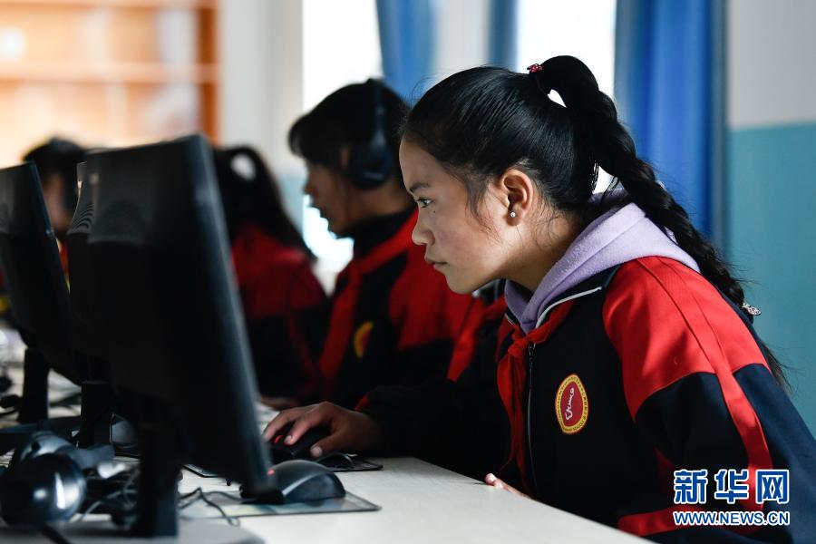 3月17日,在果洛藏族自治州甘德縣崗龍鄉(xiāng)寄宿制中心小學(xué),學(xué)生在上計(jì)算機(jī)課。新華社記者 張龍 攝