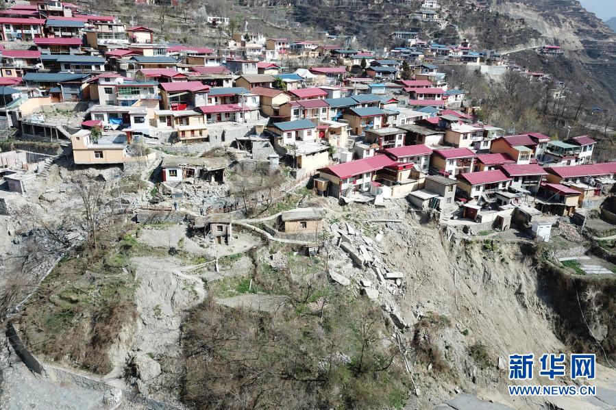 這是3月16日在舟曲縣果耶鎮(zhèn)磨里村拍攝的滑坡中受損的民房(無人機照片)。新華社記者 范培珅 攝