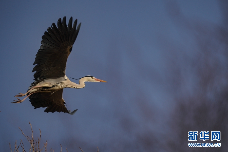 翩然起舞的蒼鷺。新華網(wǎng) 潘彬彬 攝