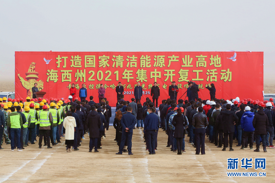 海西州2021年首批項(xiàng)目集中開(kāi)復(fù)工儀式德令哈現(xiàn)場(chǎng)。新華網(wǎng) 卡婭梅朵 攝