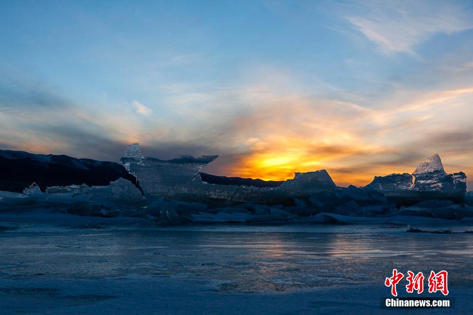 湖面上隆起的冰塊也在夕陽照射下波光粼粼,勾勒出一幅絕美畫卷。趙海梅 攝